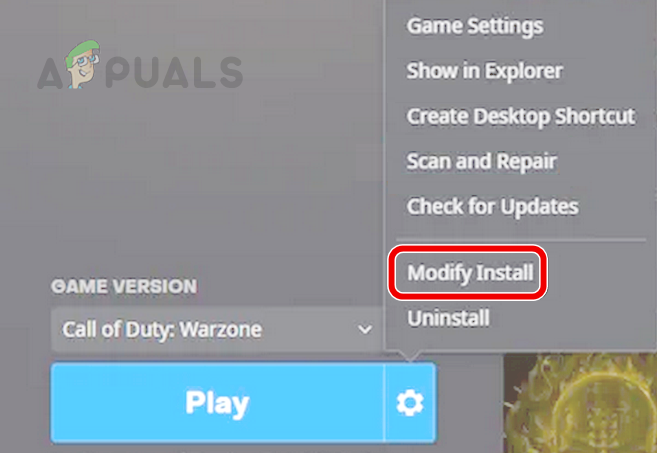 Modify Install of Warzone - Then, in the resulting popup, select Modify Install (in the game’s content section) and uncheck all the game mods.