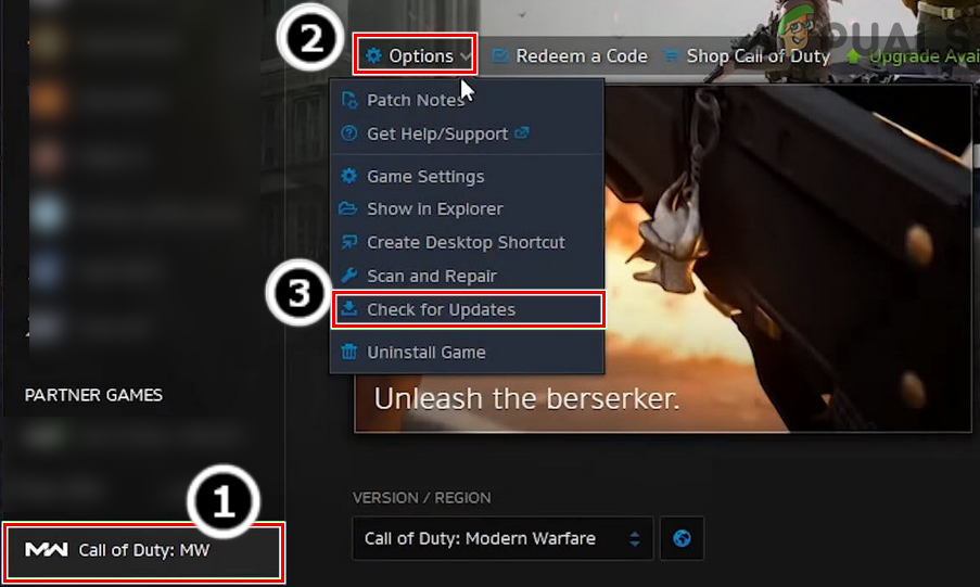 - Now expand the game’s Options and in the dropdown menu, select Check for Updates.