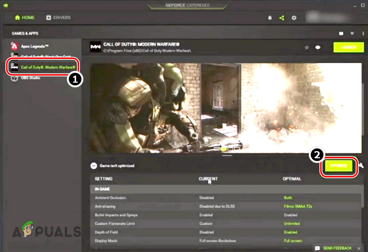 Optimize Warzone in GeForce Experience - Now in the right pane of the window, click on the Optimize button, and once the game’s optimization is complete, launch the Warzone game to check if it is clear of the dev error 6039.