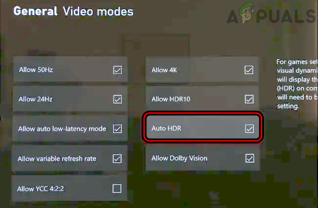 Open TV & Display Options in the General Tab of Xbox Settings - Now open Video Modes and uncheck Auto HDR.