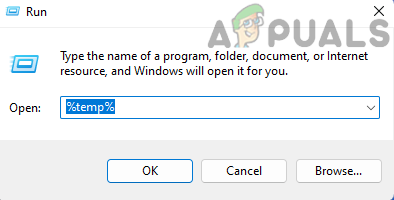 Delete the Files in the Percent Temp Folder - Once done, navigate to the following path in the Run command box:
