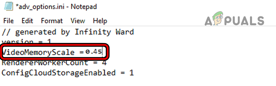 Set VideoMemoryScale of Warzone to 0.45 - Now save the changes and close Notepad.
