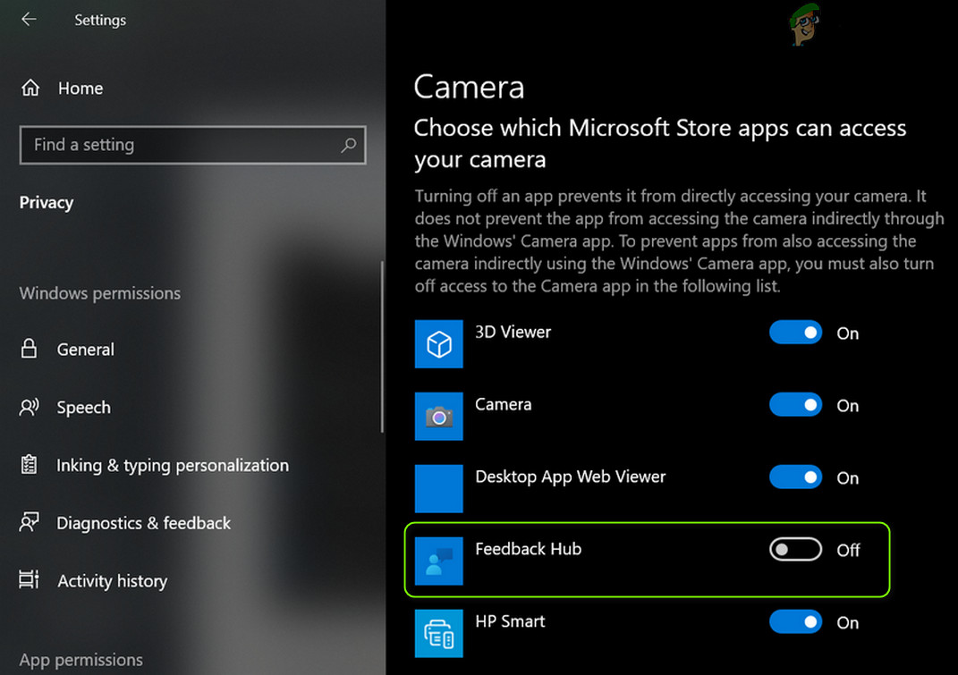 Disable the Camera Access of the Feedback Hub - If not, disable the options of ‘Allow Apps to Access Your Camera’ and ‘Allow Desktop Apps to Access Your Camera’.