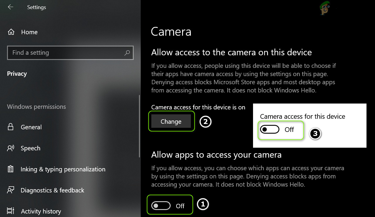 Solution 2: Disable the Webcam Access in the Privacy Settings