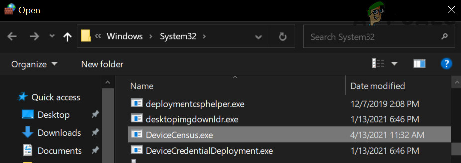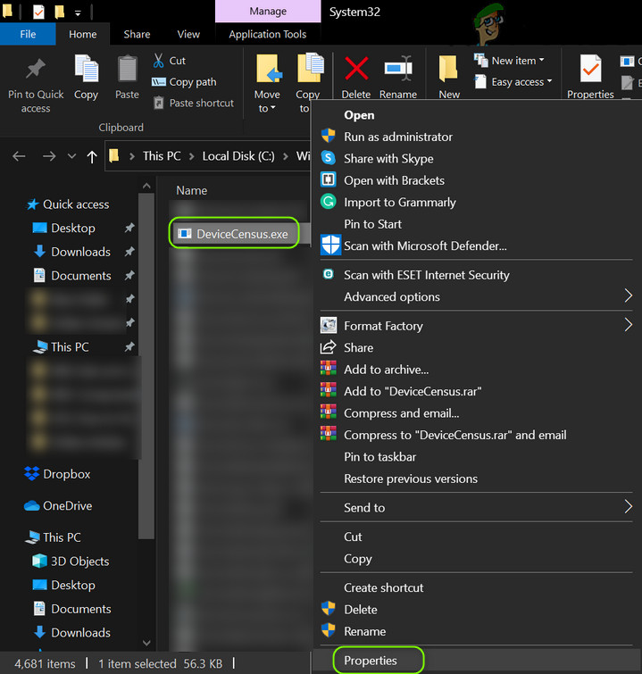 Open the System32 Folder Through the Run Command Box - Then right-click on the DeviceCensus.exe file and select Properties.