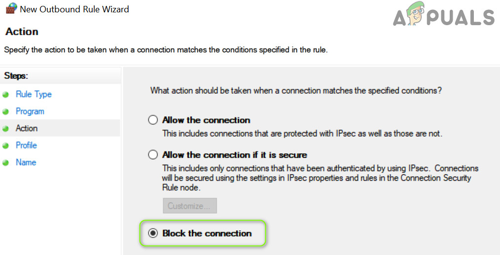 Add Device Census to the Firewall - Now choose the radio button of Block the Connection and click on the Next button.