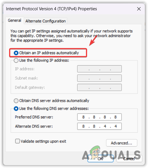 - Here, tick Obtain an IP address automatically and click OK to save the settings.