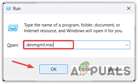 - Here, type devmgmt.msc in the input box and click OK to navigate into the device manager.