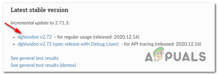 - Visit the official download page of dgVoodoo2 and click on the hyperlink associated with the stable version of dgVoodoo.