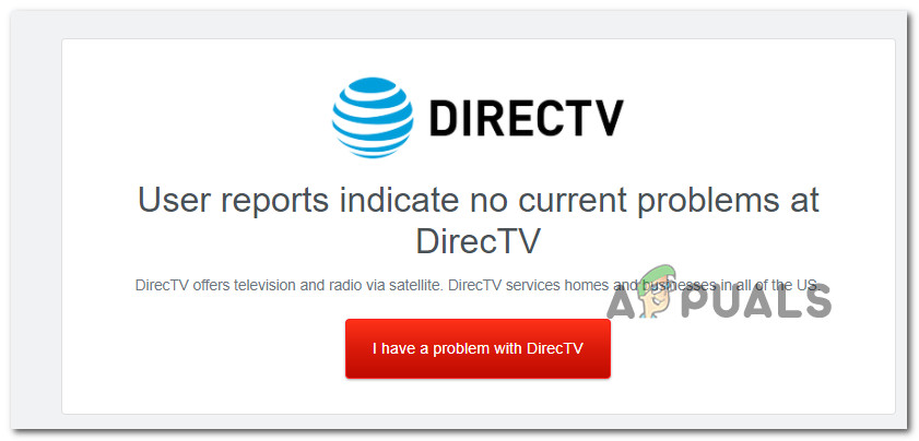 - Outage period – According to some affected users, you can also expect to see this error if AT&T is currently doing some infrastructure changes, the servers are offline or there’s a bigger technical issue affecting DirecTV users in your area. If this scenario is applicable, there’s not much else you can do other than wait for the issue to be rectified by qualified technicians.