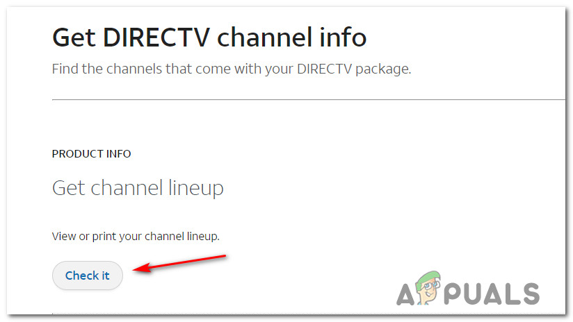 To verify if this scenario is true in your case, access the DirectTV channel lineup page. Once inside, click on Check it under Get Chanel Lineup.