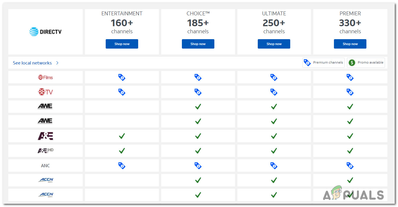 - Channel is not part of your subscription package – Normally, this error code will occur if the channel you are trying to watch from your DirecTV device is not part of your subscription package. To check whether this is what’s causing the issue, you need to take a look at the Channel Lineup and compare it against your own plan.