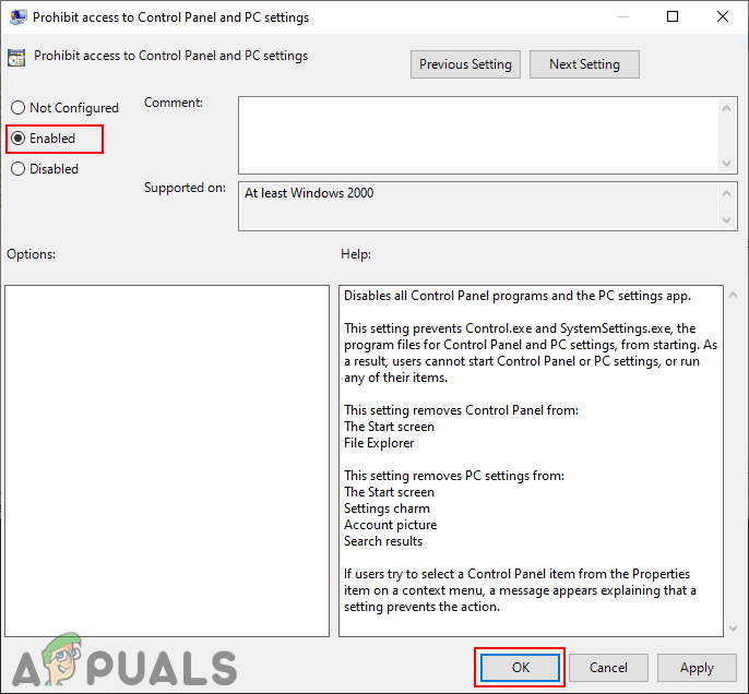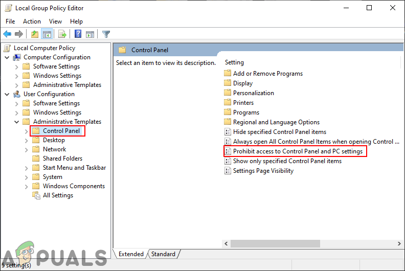 Control Panel and Settings App are used for configuring different types of settings for the Windows operating system. These are default applications and can be accessed easily through different methods. However, an administrator of the system can completely disable the access to Settings App and Control Panel for standard users. There are also policy settings for disabling a specific setting in these, but it can also be completely disabled. In this article, we will be showing you methods through which you can disable access to Control Panel and Settings App.