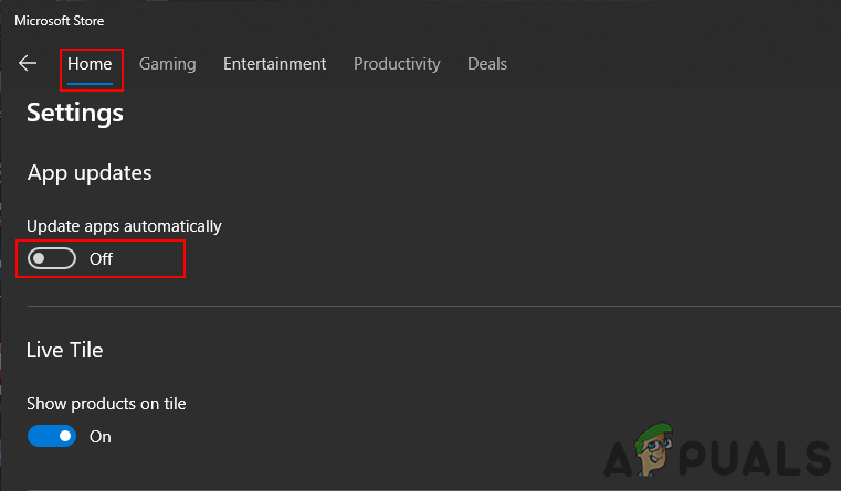Opening Windows Store Settings - At the Home tab, the first option will be for automatic updates. Click on the toggle to turn it off.