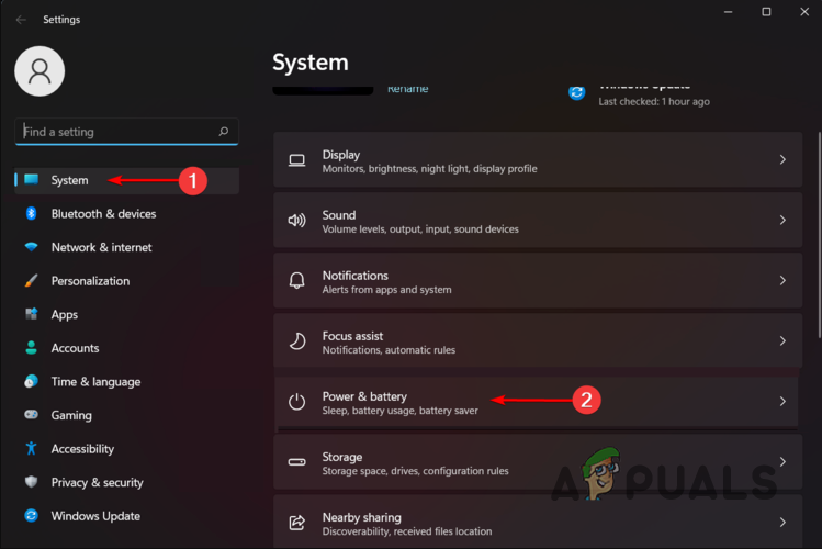 - Once the Windows Settings app is open, on the System tab, look for the Power & battery option and then open it up.