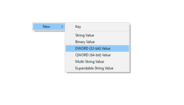 - Right-click an empty area, select New > DWORD (32-bit) Value.