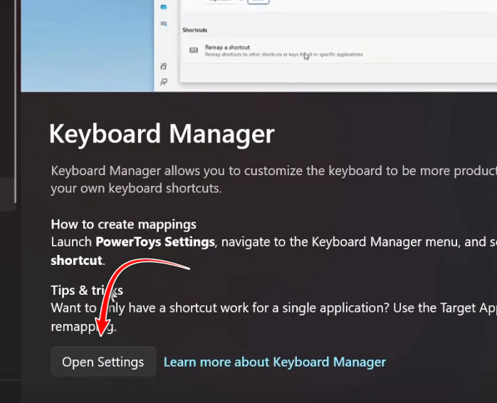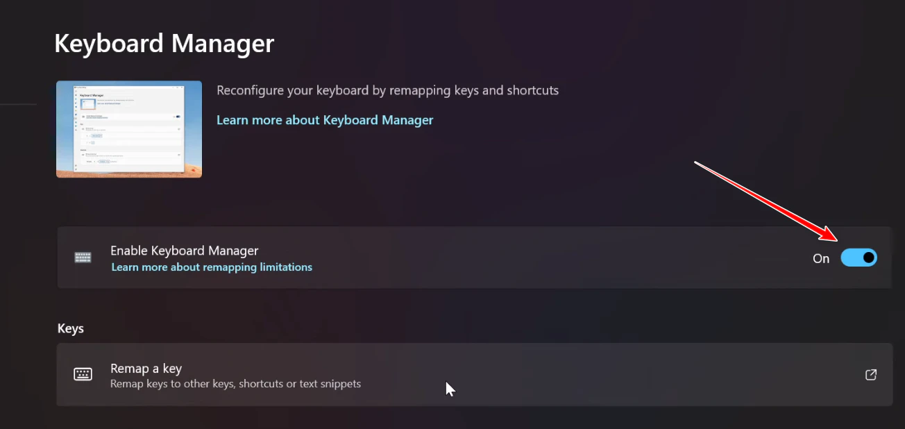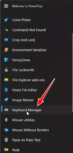 - Open PowerToys and go to Keyboard Manager in the left menu.
