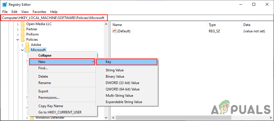 - If the Edge key is missing, you can create it by right-clicking on the available key and choosing the New > Key option. Then name the key as “Edge“.