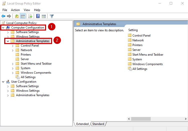 - Now go to Computer Configuration > Administrative Templates.