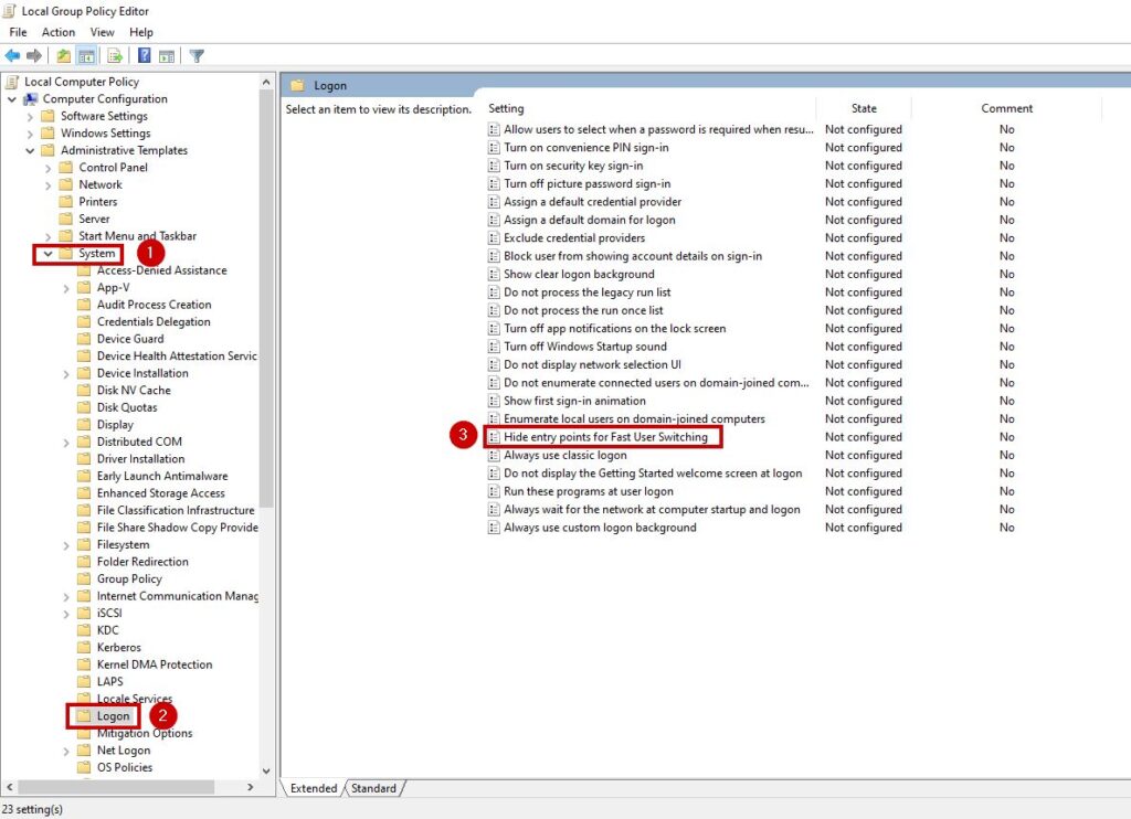 - Finally, expand System and select Logon.
