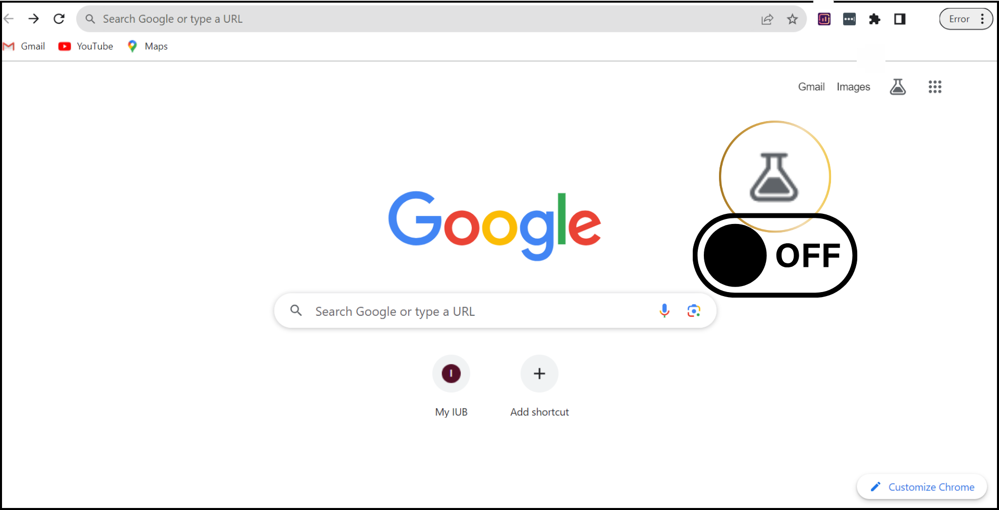 Open the New Tab on Google Chrome - Click the “Labs icon” at the top right corner of the page.