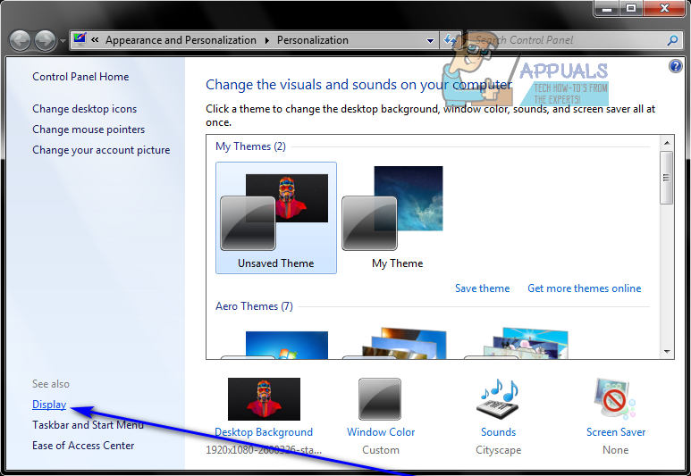 - In the left pane of the window that appears, click on Display.