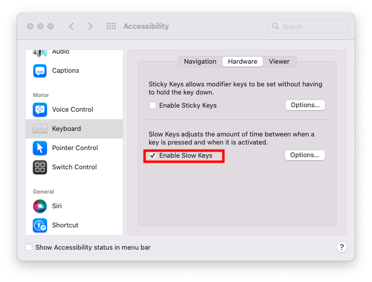- Then, select the box next to Enable Slow Keys.