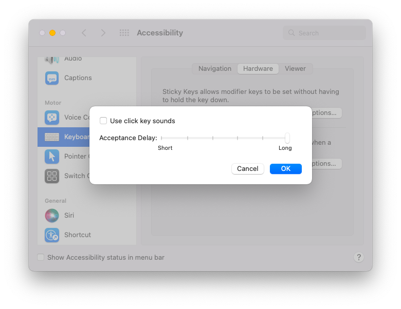 - Click on Options… and drag the slider to the longest option for Acceptance Delay.