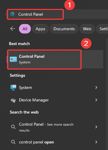 - Type Control Panel and hit Enter to navigate into it.