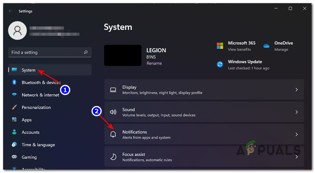 - Once you’re inside the System tab, move over to the right-hand side menu and click on Notifications.