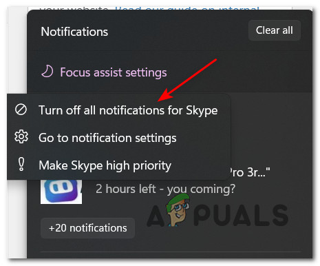 Accessing the settings of notification on Windows 11 - From the context menu that just appeared, click on Turn off all notifications for *name of the app*.