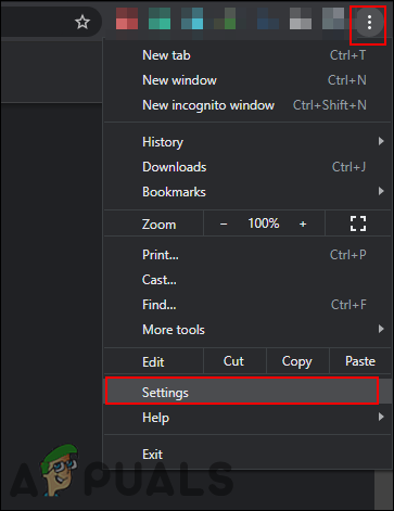 - Open your browser and click on the Three dots menu option at the top right corner. Now select settings in the list.