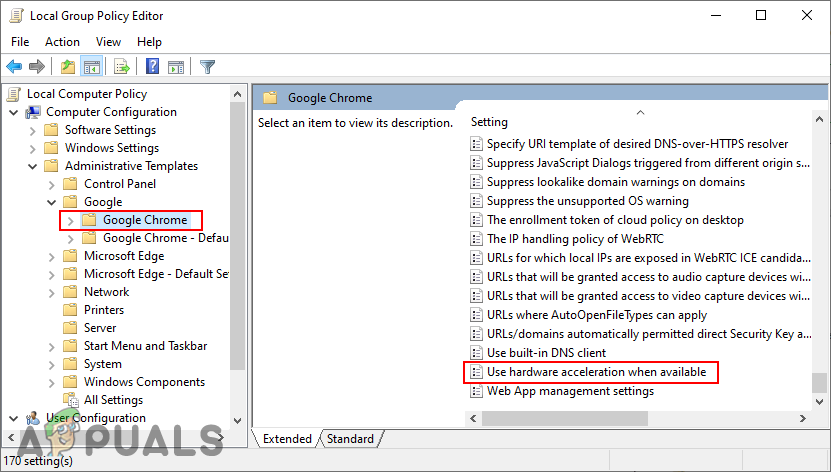 Disabling hardware acceleration in Chrome - Click on the Apply/Ok button and close the Local Group Policy Editor window.