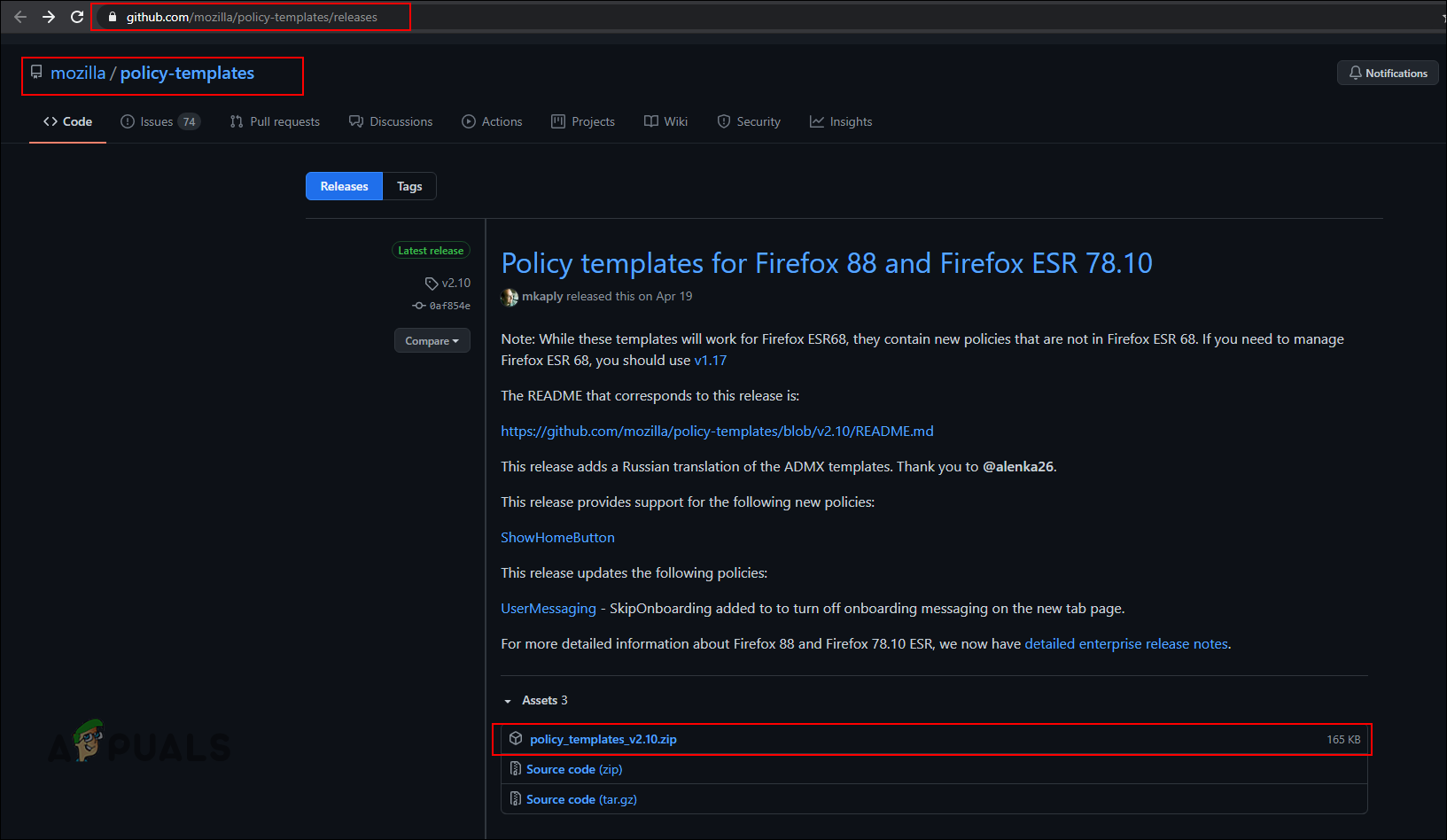 - Open your browser and go to the Firefox Github page. Download the latest policy template zip file.