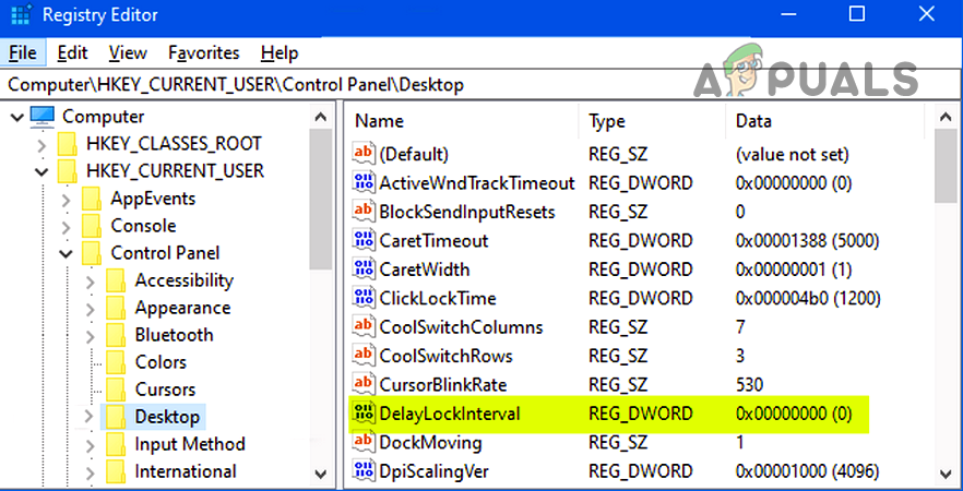 - Next, name the key ‘DelayLockInterval’ and then double-click on it.