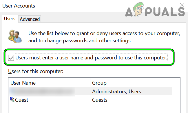 Disable User Must Enter a User Name and Password to Use This Computer - Now restart your system and upon restart, check if the password requirement on the system wake-up is disabled.