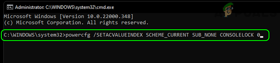 powercfg /SETACVALUEINDEX SCHEME_CURRENT SUB_NONE CONSOLELOCK 0