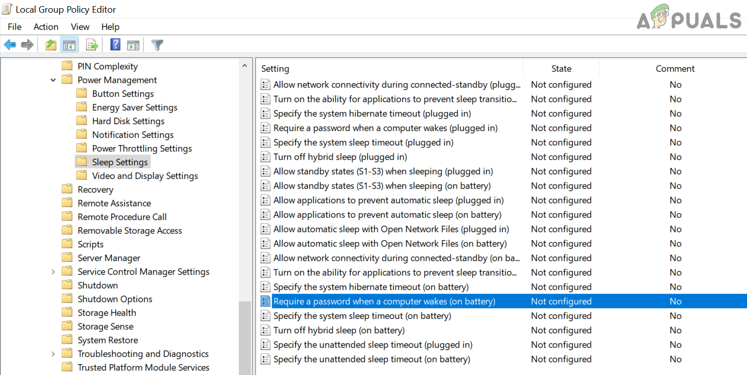 Open Require a Password When a Computer Wakes (On Battery) in the Group Policy Editor - Now apply the changes made and double-click on Require a Password When a Computer Wakes (Plugged in).