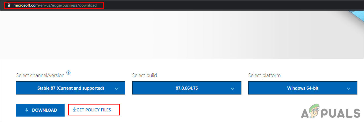 - Go to the Microsoft site to download the Policy files for the new Microsoft Edge. You can select the version, build, platform, and then click on the GET POLICY FILES.