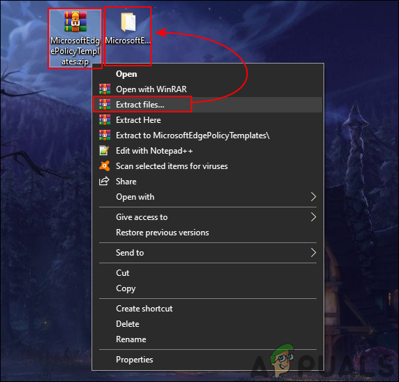 Downloading the policy files - Once the files are downloaded, you can extract the file by using the WinRAR as shown below: