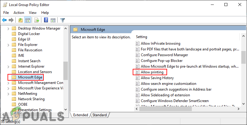 How to Disable Printing in Microsoft Edge on Windows 10?