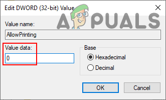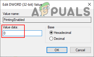 - If you ever want to enable the printing back again, just change the value data to 1 or remove the value from the Registry.