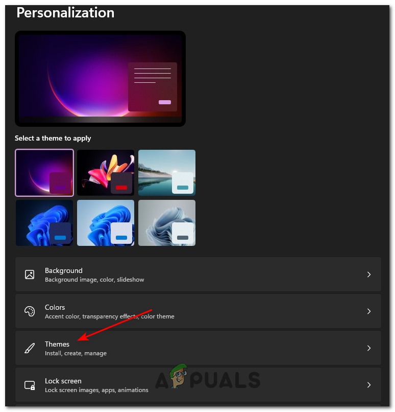 Accessing the Personalization tab - Once you’re inside the Personalisation tab, scroll down and click on Themes from the list of available options.