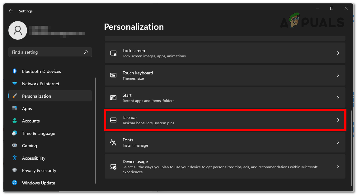 Accessing the Taskbar Settings inside the Personalization section Note: You can also access the Taskbar Settings directly from the taskbar by right-clicking on it, then the Taskbar settings button should be visible.