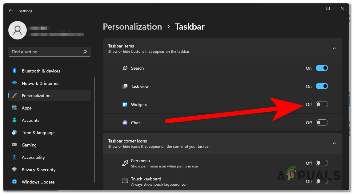 Disabling the Widgets from the Taskbar Settings - The widgets button should instantly disappear from your taskbar, meaning that the feature is disabled.