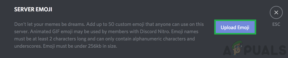 Clicking on the “Upload Emoji” option Note: You can only upload a maximum of 50 emojis per server and they can be used by all the people that join your server.