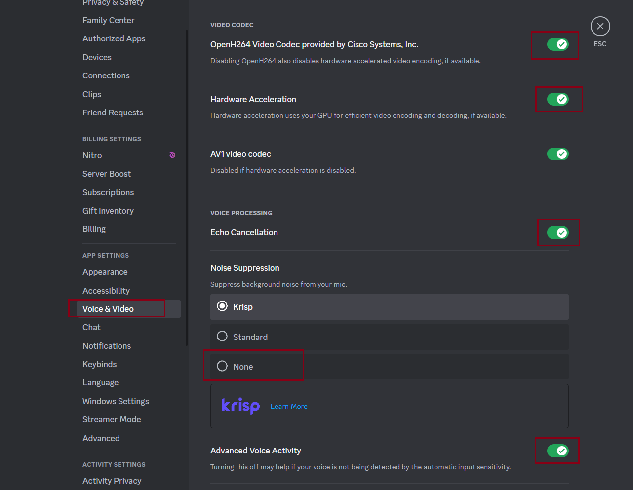 Discord enhances voice chat with features like noise suppression and echo cancellation. While they improve voice quality, they also consume considerable CPU resources. Disabling these features may lessen CPU load.