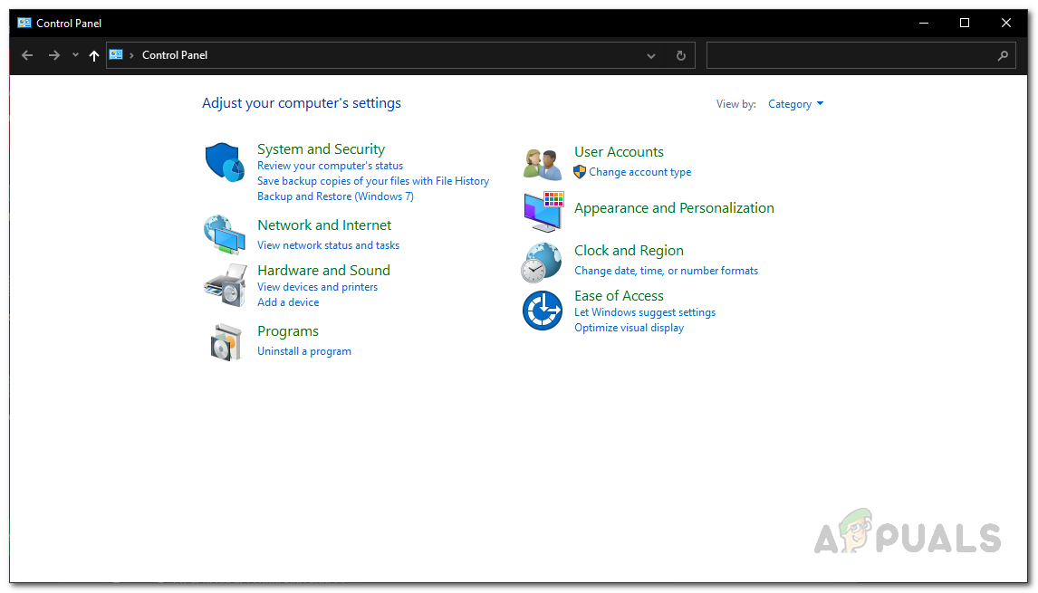 - First of all, open up the Control Panel by searching for it in the Start Menu.