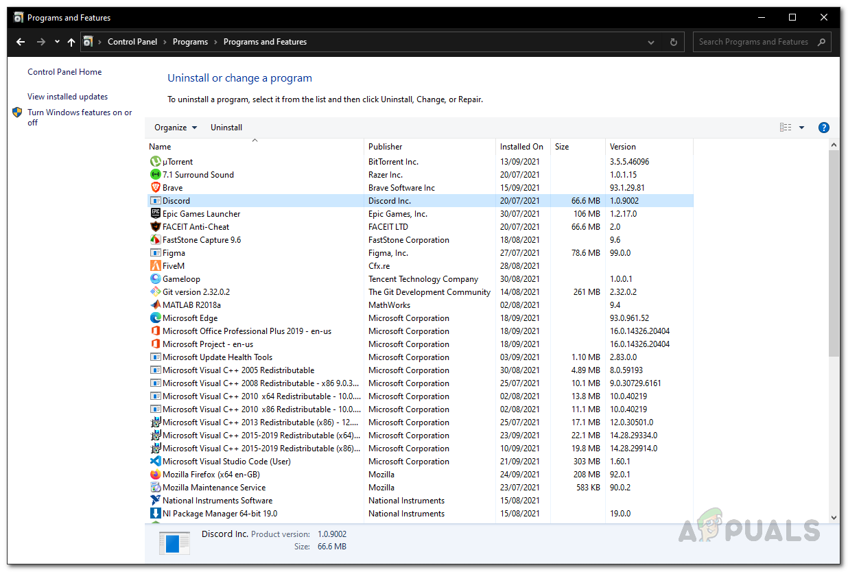 Finally, if none of the above solutions fix the problem for you, then it very well be due to your Discord installation files. If this case is applicable, you will have to completely uninstall Discord on your system and then reinstall it again. Uninstalling Discord is really easy, just follow the instructions given down below: