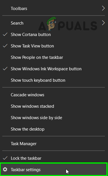 - Right-click on the Taskbar and choose Taskbar Settings.